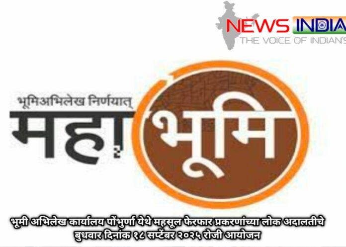 भूमी अभिलेख कार्यालय पोंभुर्णा येथे महसूल फेरफार प्रकरणांच्या लोक अदालतीचे बुधवार दिनांक १८ सप्टेंबर २०२५ रोजी आयोजन