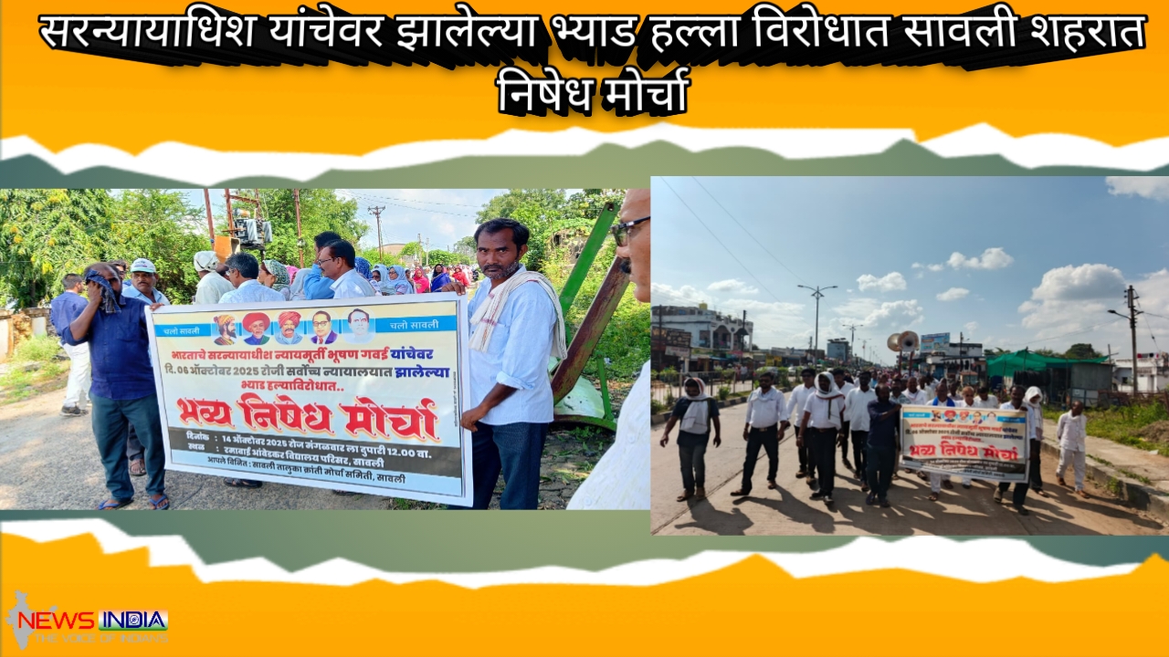 सावली: १४/१०/२०२५ भारताचे सरन्यायाधिश न्यायमुर्ती भुषण गवई यांचेवर दि. ६ ऑक्टोंबर रोजी सर्वाच्च न्यायालयात झालेल्या भ्याड हल्याविरोधात सावली तालुका क्रांती मोर्चा च्या वतीने सावली शहरात तालुक्यातील संविधान प्रेमीचा मोर्चा १४ ऑक्टोंबर २०२५ रोजी काढण्यात आला. या मोर्चात असंख्य संविधान प्रेमी उपस्थित होते.