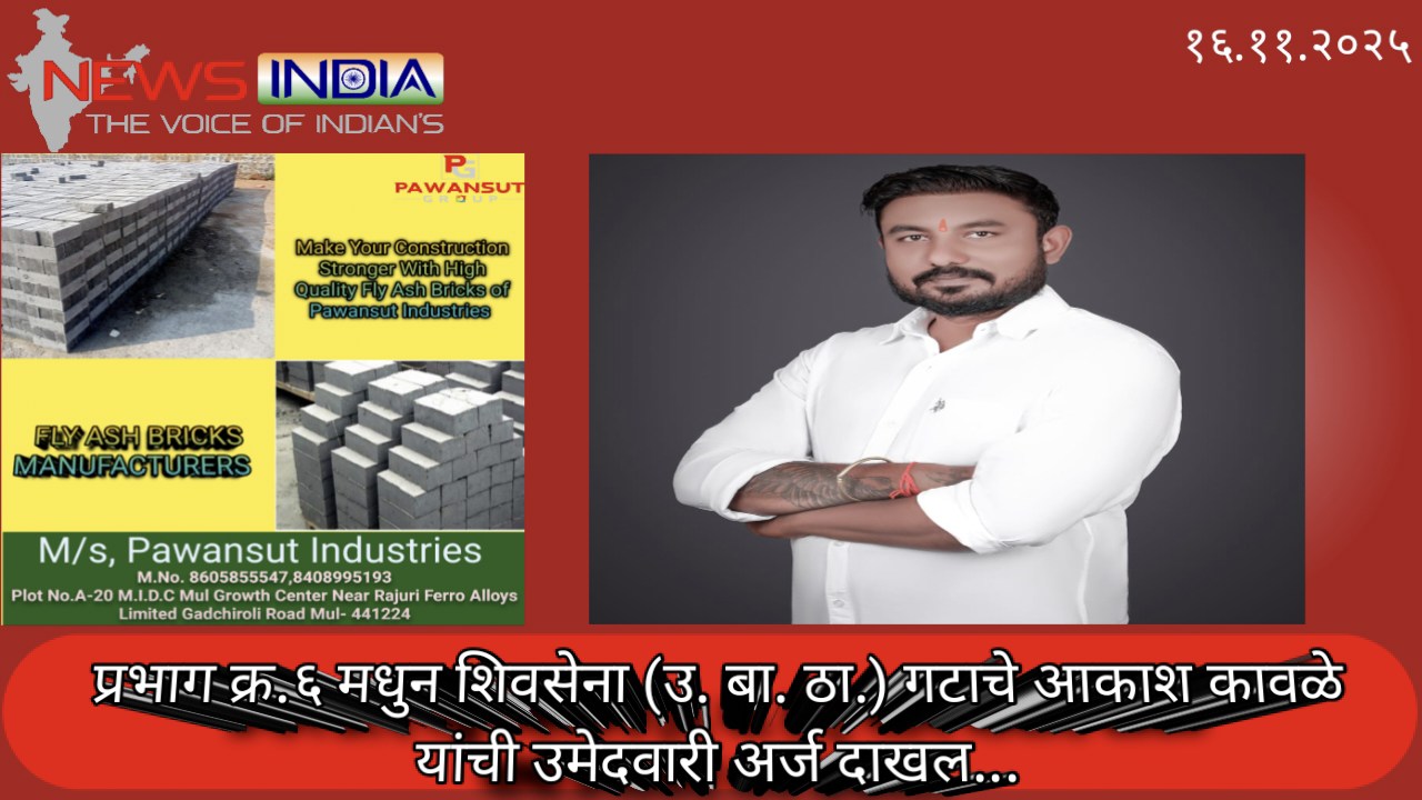 मुल : मुल नगरपरिषद सार्वत्रिक निवडणूक होत असलेल्या करीता उमेदवारी अर्ज दाखल सुरू असुन आज आकाश कावळे यांनी प्रभाग क्र ६ मधुन आपली उमेदवारी दाखल केली तसेच शांत स्वभाव होतकरू व माजी शिवसेना तालुका प्रमुख मुल (शिंदे गट) , विदर्भ तेली समाज महासंघ मुल उपाध्यक्ष, शिवशाही युवक मित्र परिवार मुल सदस्य, तसेच मुल शहरात संघटनेच्या माध्यमातून अनेक सामाजिक कार्य व मुल शहरातील अनेक कामे केली आहेत त्यामुळे त्यांच्या कार्याची ओळख मुलं शहरात आहे, प्रभाग क्र ६ मधुन शिवसेना उ बा ठा गटातुन उमेदवारी अर्ज दाखल केला मुळे येता निवडणूकीत त्रिमूर्ती लढत होईल अशी चर्चा जनतेत निर्माण झाली आहे , तसेच त्यांच्या मागे अनेक युवक मित्र परिवार आहे ह्या मुळे त्यांची बाजु जमेची असल्याचे मुल शहरात चर्चाला उधाण आले आहे हे विशेष