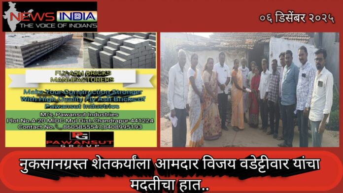 नुकसानग्रस्त शेतकऱ्या ला आमदार विजय वडेट्टीवार यांचा मदतीचा हात