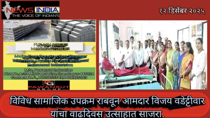 विविध सामाजिक उपक्रम राबवून आमदार विजय वडेट्टीवार यांचा वाढदिवस उत्साहात साजरा.